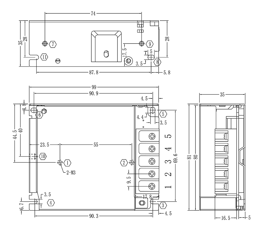 单路开关电源安装尺寸及接线